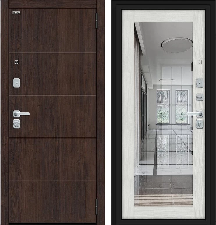 Надежная входная Дверь Браво Флэт/BChrome Almon/Bianco Melinga премиум класса по цене 42 483 руб. Большая толщина стали защитит от проникновения в ваш дом, квартиру или коттедж. Используется очень качественная фурнитура: замки, цилиндры, ручки, защелки. Покрытие и отделка двери изготовлено под внимательным контролем производителя. Дверь имеет долгий срок службы и гарантию.